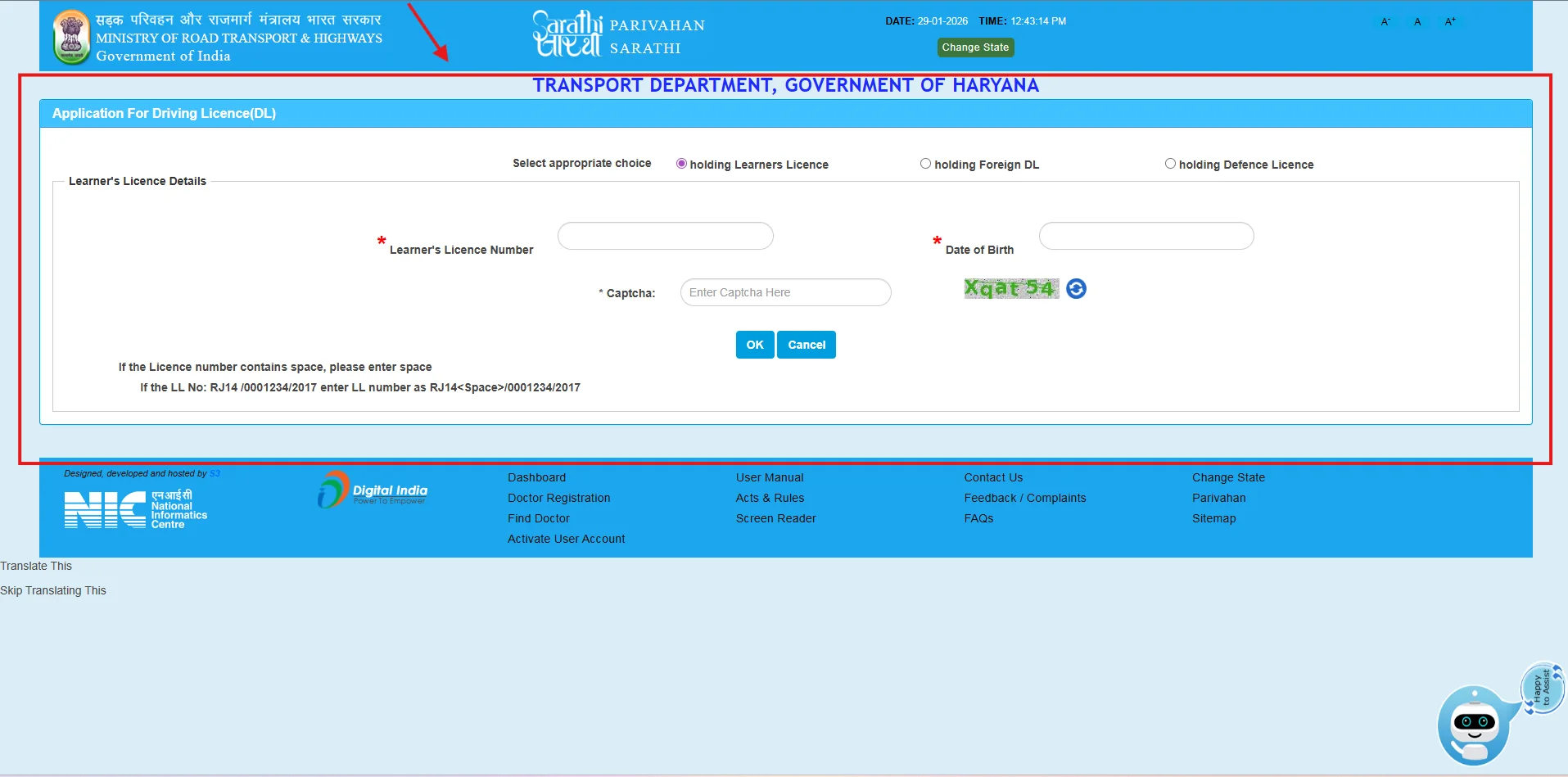 - Select Licence Type: Choose whether you are applying for a new driving licence, learning licence, or duplicate licence.